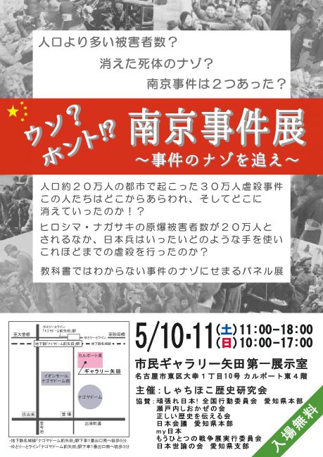 ついに南京事件の謎を解明するパネル展示が名古屋市で開催されます。