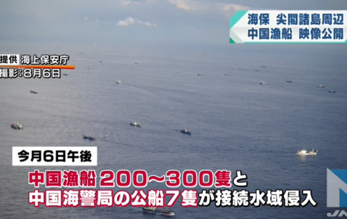 8月6日には尖閣諸島へ300隻の支那海軍が押し寄せ、