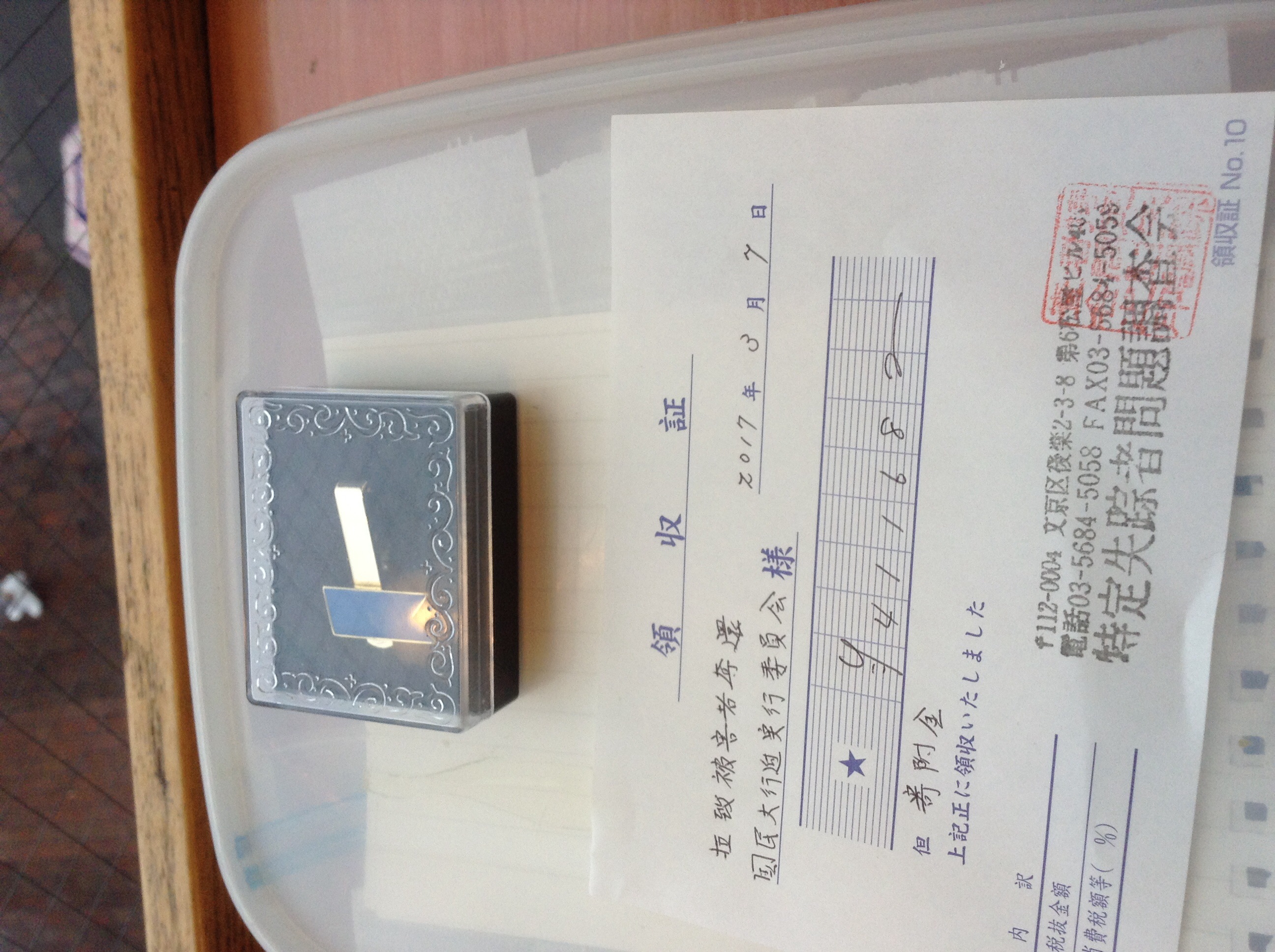 ご報告、第34回署名活動で頂いた浄財よりの必要経費差し引き済額41168円と署名100筆を届けて参りました、弊会より調査会に還流した浄財総額1041984円、署名総数4810筆となりました。ご協力頂いた皆様に感謝申し上げます。有難う御座いました