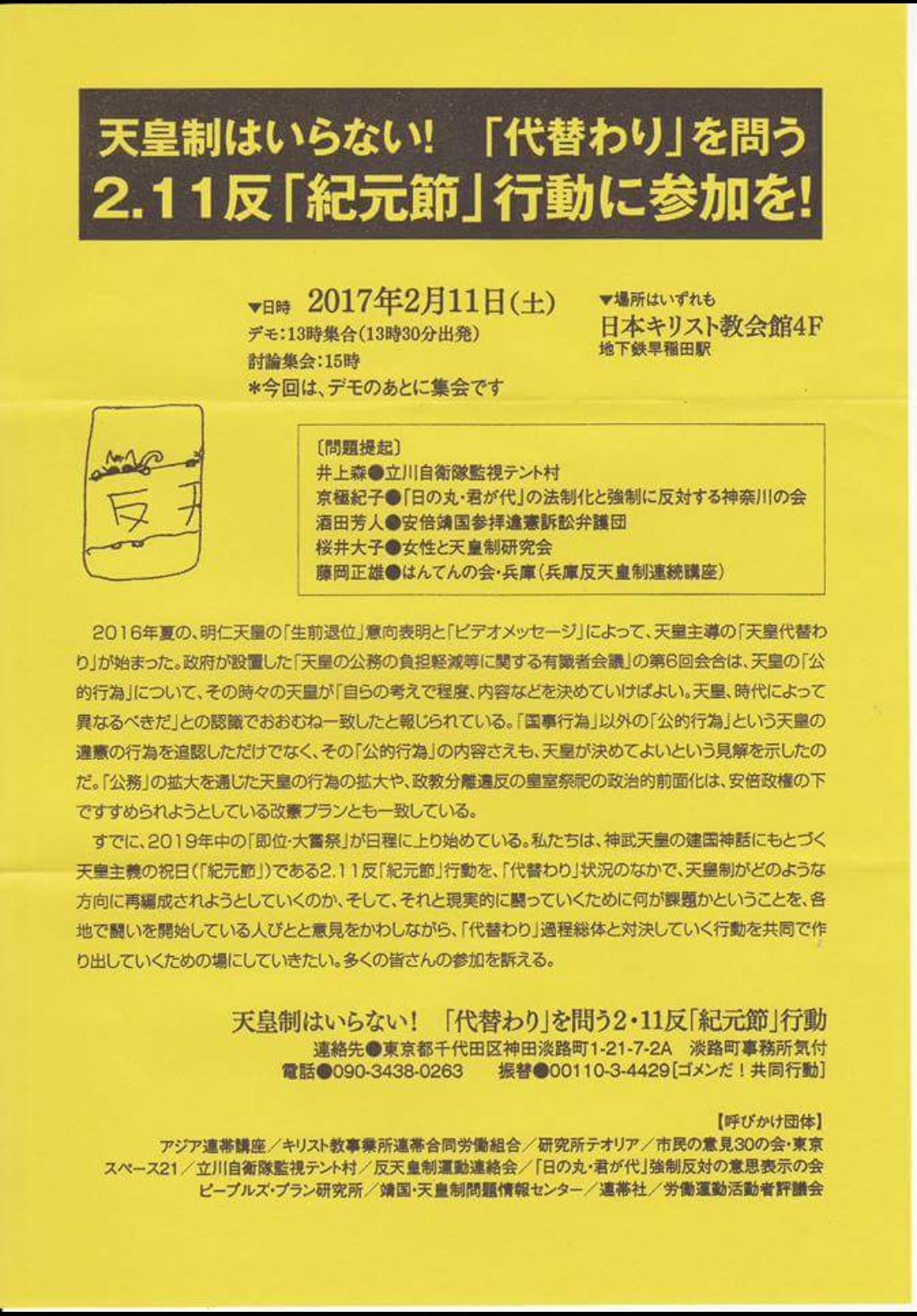 反天皇行動の不敬な反天連の集会場所、デモの近くで紀元節お祝い街宣を展開します。