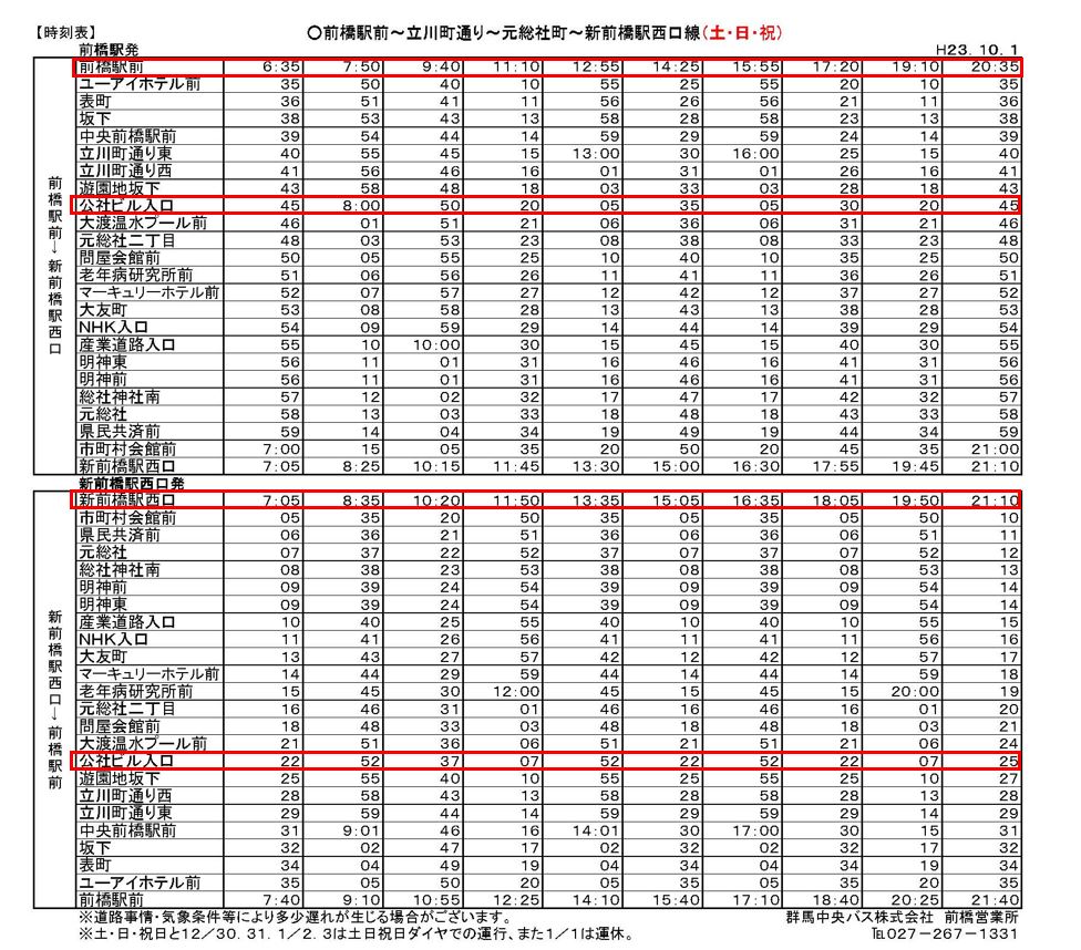 前橋駅よりのバス時刻表 写真参照