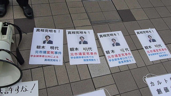 「東村山事件」真相究明街宣!さる平成7年9月1日に東村山駅前のビルから転落した朝木明代市議の不審死について、真相究明の街頭演説活動を行ないます。8月に続き2回目となる東村山事件の真相究明街宣です。奮ってご参加下さい。【時間】16時 集合 開始(17時までの予定)【場所】JR立川駅前(北口)【主催】政教分離を求める会(代表・瀬戸弘幸)【現責】有門大輔(同会副代表)