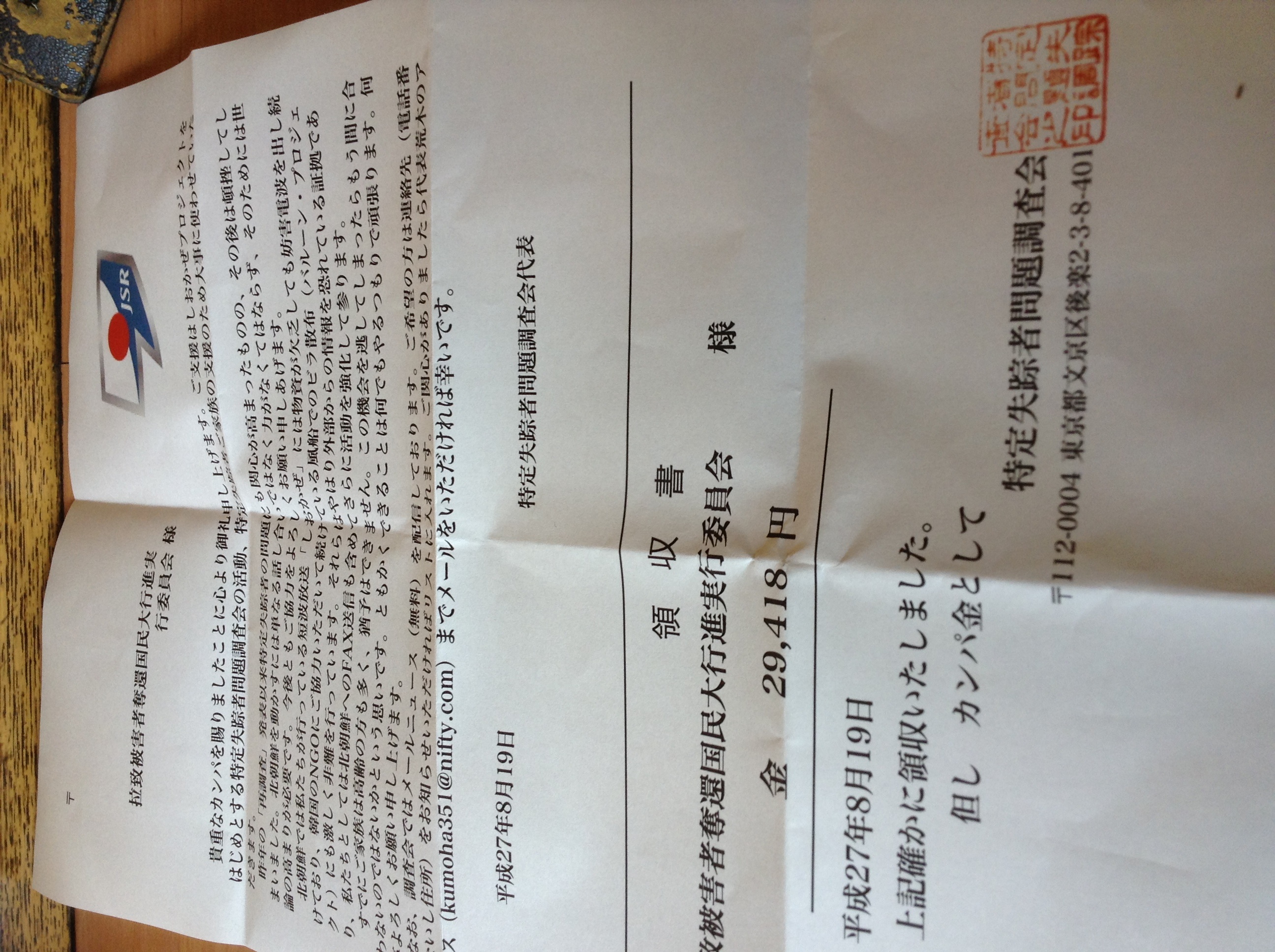 8月19日飯田橋の特定失踪者問題調査会に届けさせて